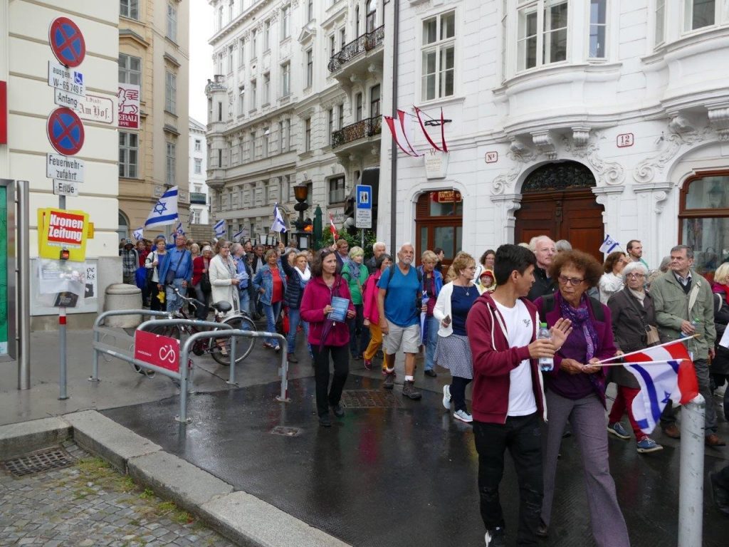 On Sunday the 2nd of September 2018, a Solidarity March for Israel took place in Vienna. This was to round off the festivities in connection with “70 years Israel”. About 500 Christians marched through Vienna, past historical Jewish landmarks, and past places where Jewish life re-emerged after 1945. In going past these places, we honoured the past, celebrated Jewish life in Vienna today and expressed our solidarity with Israel and the Jewish people.