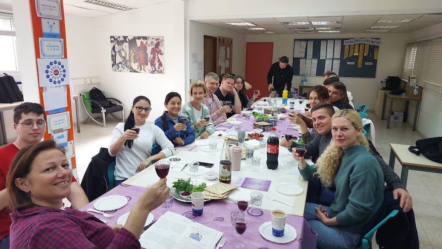 First Passover dinner at Ulpan in kibbutz Merhavia. This year we welcomed more than thirty families there. Due to the large number of olim we have opened three Ulpan groups in Merhavia. In a couple of days, all families will celebrate their First Pesach together! | Photo: JAFI