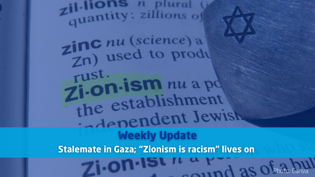 Stalemate in Gaza; “Zionism is racism” lives on
