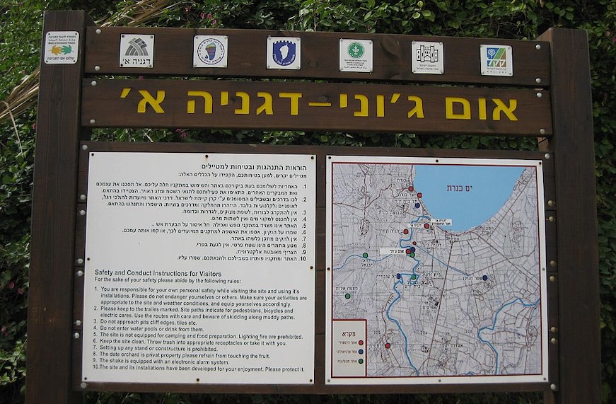 Rules for visitors to Umm Juni-Degania Alef – March 2012 | Photo: Wiklimedi Commons by Digger Dina