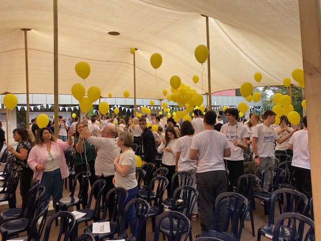 When Leon is given the floor, he talks about the God of Abraham, David and Solomon. The people have been going through good times and hard times for three thousand years. And the God who stood by Abraham and King David is also the God who stands by Sasha and Nastiya today, names of random Jewish immigrants from Russia and Ukraine. Together with young people, we release balloons for the 240 hostages in Gaza; a music group sings ‘Bring them home’. And all the while we hear the hum of fighter jets overhead.
