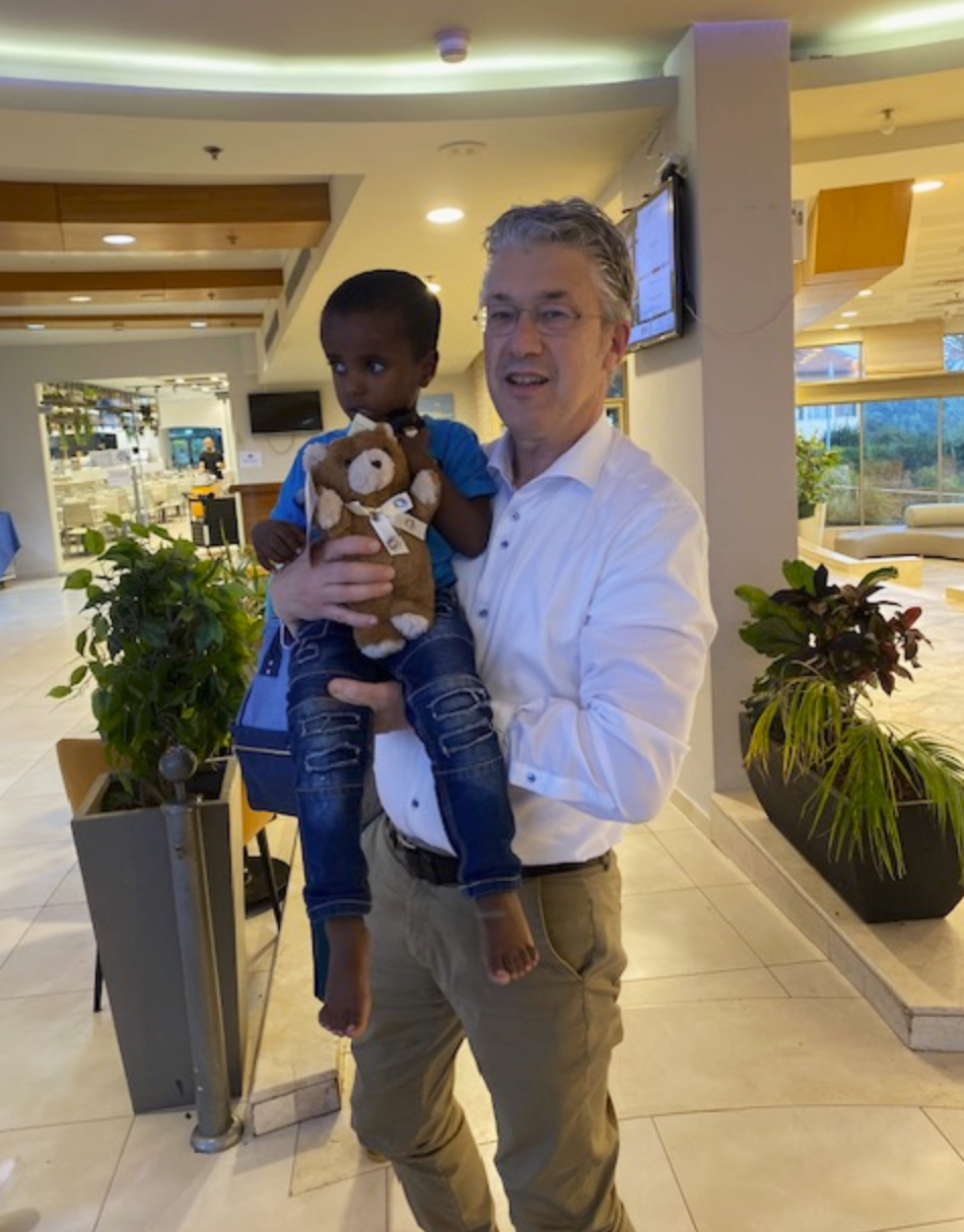 On Monday October 9, while groups of terrorists were still roaming around, they were evacuated by buses. There was much fear and confusion. ‘We were running around pushing people into the buses. ‘Full? Drive! Just south of Haifa, in a large hotel, Racheli tells her story. The hotel houses 400 Ethiopian residents of kibbutz Ibim, nearly 300 of whom are children. The many children roam the hotel’s lobby and dining room. They do homework, play games and run around. Men and women are praying in the synagogue.