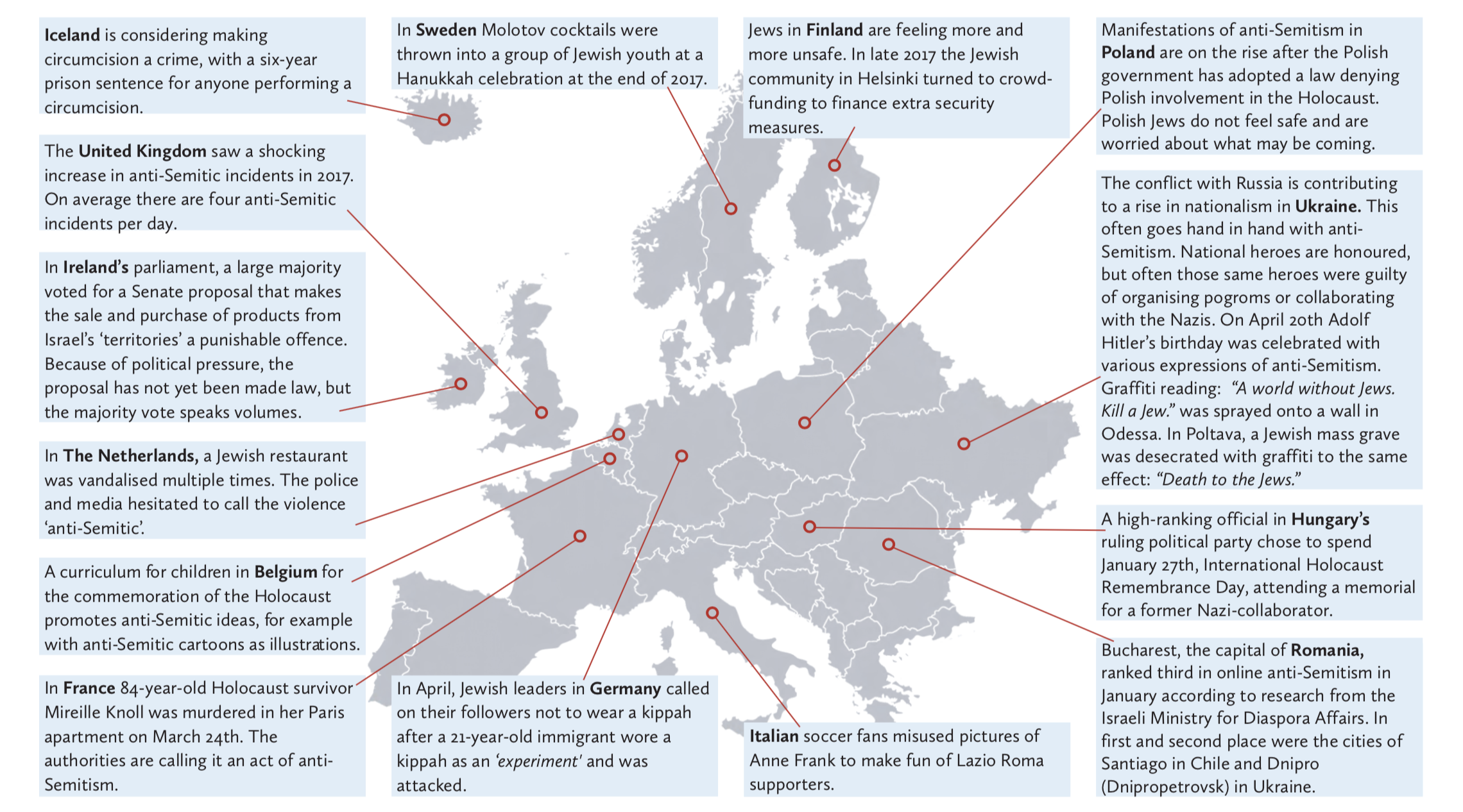 Religious freedom is under pressure. Political disagreements with Israel are taken out on (local) Jewish communities. Meanwhile, traditional forms of anti- Semitism are also resurfacing.