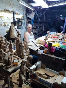During our visit to Bethlehem, we visited an olive wood workshop. Attala Zachariah was working alone at his worktable. His workshop was under his house, where piles of olive wood stumps could be seen everywhere in the garden. “We used to sit here with five people working hard to keep up with the demand for olive wood sculptures for visitors to the city. But now I sit here on my own and hope for better times”. The people of Bethlehem make a living out of tourism, and olive wood carvings are something visitors like to take home as souvenirs.