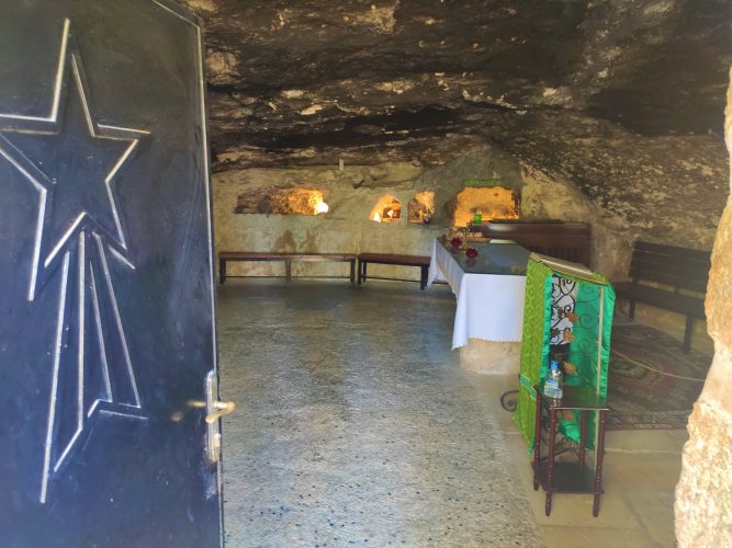 The Church of the Nativity is in the centre of the city. Millions of tourists go there every year. Before the corona epidemic started, there were long queues of tourists wanting to enter the church. A lot of money has been invested in restoring the old medieval church with its mosaic floor and walls. Where people used to stand in long queues to catch a glimpse of the star indicating the place of birth, only two Franciscan monks stood. This scene was repeated at what is called Shepherds Field, which reminds us of the event in Luke 2:8: “Not far from here the shepherds spent the night in the field…”. We saw four nuns in habits walking out of the place; nobody else was to be seen. The area around Shepherds Field is being built up. The shepherds with their flocks, who pasture here after the first rains, cannot be seen very well.
