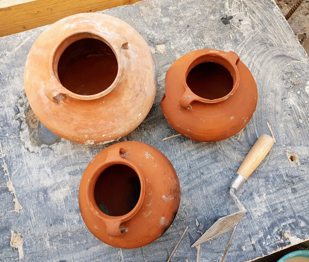 Intact Herodian-period cooking vessels collected from the bottom of the water cistern. | Photo: Michal Haber/Hebrew University.