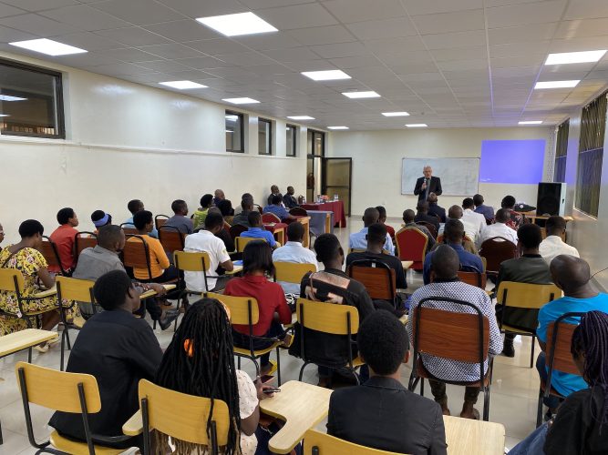 60 students of the Protestant University of Rwanda listening to our speaker Johannes Gerloff from Israel. | Photo: C4I