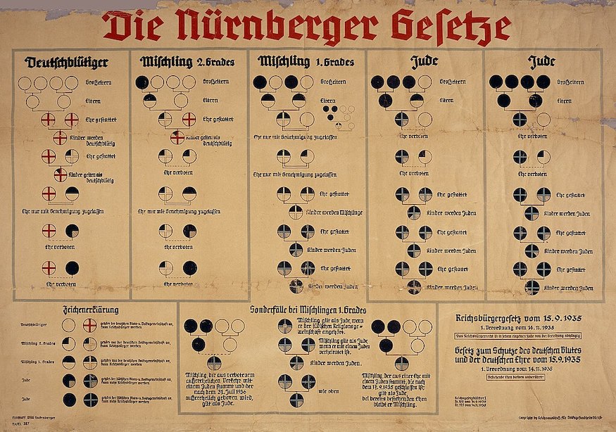 Chart to describe Nuremberg Laws of 15 September 1935 and the respective regulation of 14 November 1935. The “Nuremberg Laws” established a legal basis for racial identification | Photo:United States Holocaust Memorial Museum Collection from Wikimedia Commons