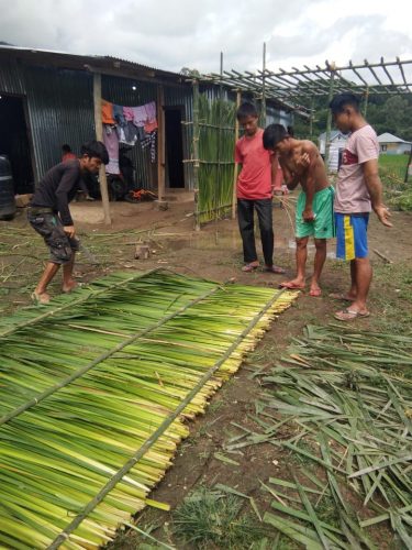 Members of the Bnei Menashe community in northeastern India in the process of building a sukkah, September 2021. | Photo: Shlomo Kipgen, courtesy of Shavei Israel.