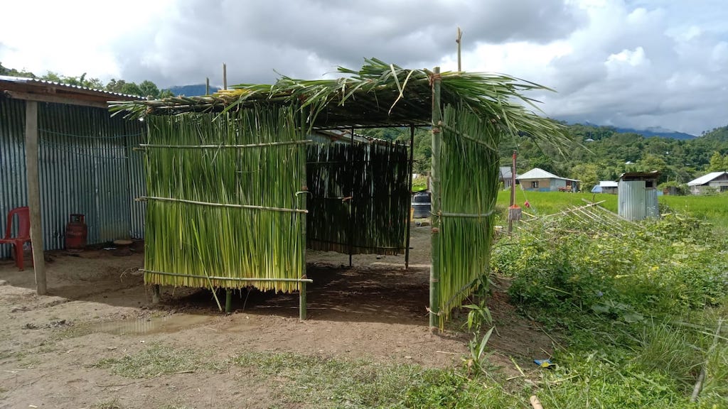 A sukkah built by members of the Bnei Menashe community in northeastern India, September 2021. | Photo: Shlomo Kipgen, courtesy of Shavei Israel.