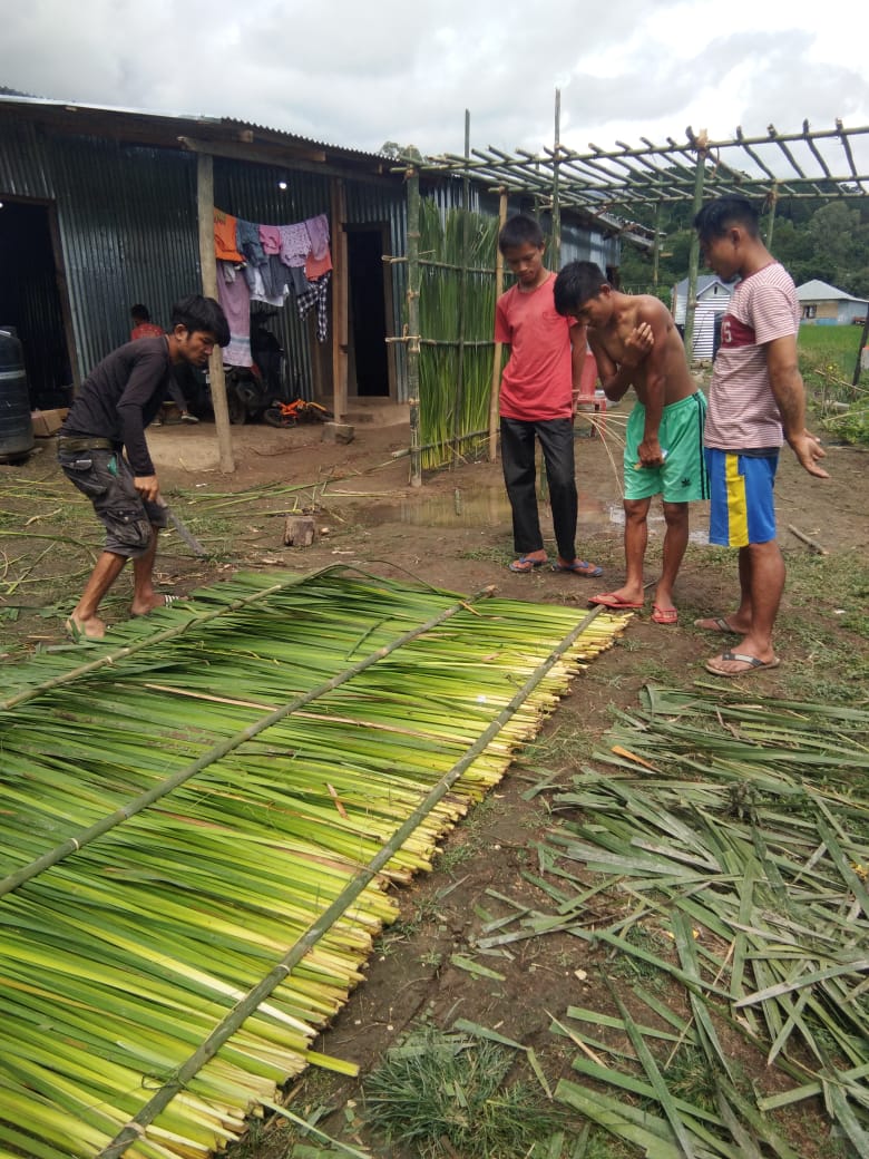 Members of the Bnei Menashe community in northeastern India in the process of building a sukkah, September 2021. | Photo: Shlomo Kipgen, courtesy of Shavei Israel.
