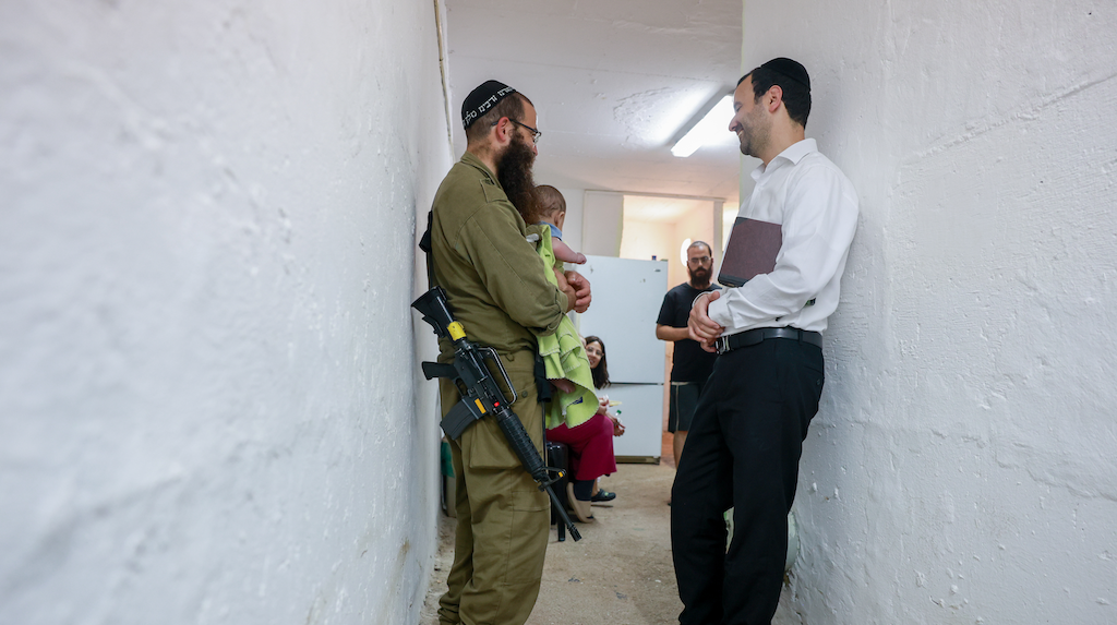 Inside a public shelter in Northern Israel during alarms and rocket and missile fire from Iran into Israel. June 16, 2025. | Photo: David Cohen/FLASH90