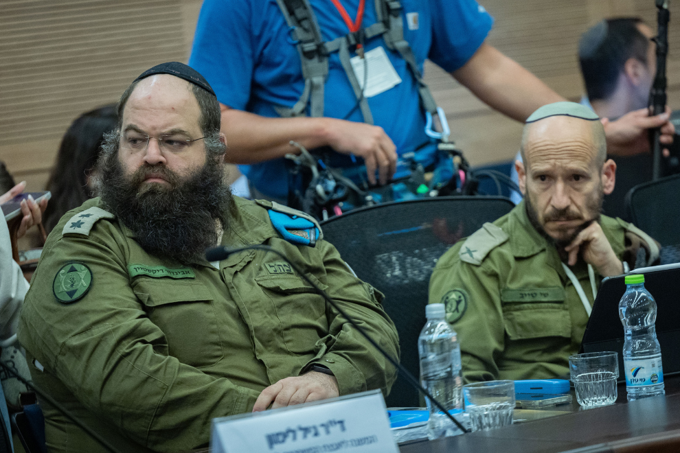 Brigadier General Shay Taib and Avigdor Dickstein, head of the Haredi branch in the IDF attend a Foreign Affairs and Defense Committee meeting at the Knesset | Photo: Yonatan Sindel/Flash90
