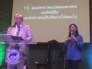 Next day is a day off. The Lord Jesus needs His servant to rest because of a bad cold he catches in the Philipines. This day helps him to get better and gain new strength. Rev. Willem preaches in the Wattana Church on Sunday starting with an English service at 9.00 am and at 10.30 there is a traditional Thai service with translation. The Wattana Church belongs to the Church of Christ in Thailand: a mainstream church with Presbyterian background not familiar with Israel as the chosen people of God. Many churchgoers listen carefully and hear this message for the first time that God has an everlasting covenant with Israel and the important role Israel will have in the future. In the afternoon during Bible study session more and more people come to listen. Many books are sold and are all available now in Thai: Why Israel?, Why End Times?, Why Jerusalem? and also Israel: Covenants and Kingdom.