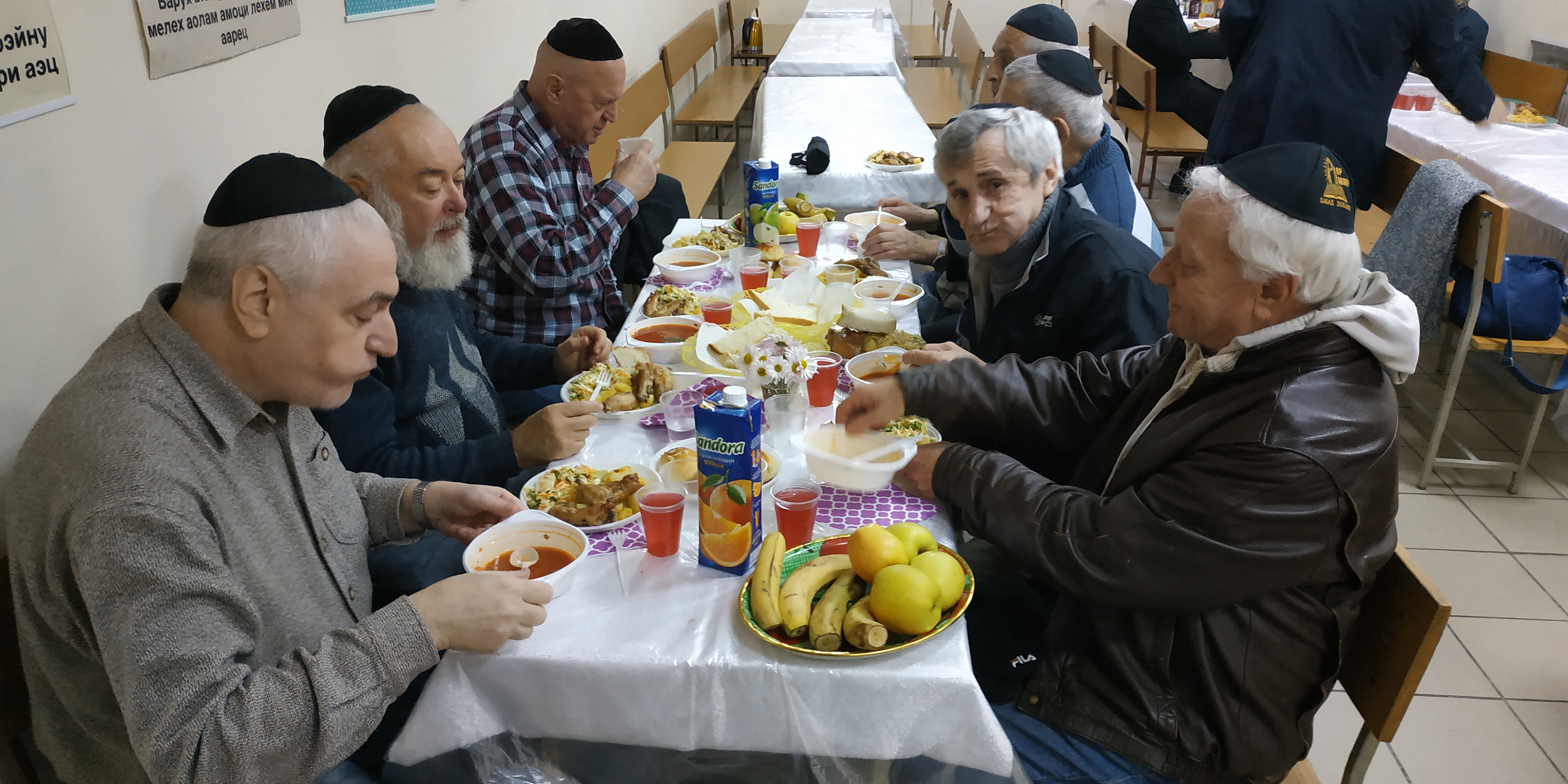 The guests who come here to eat every day, clap enthusiastically and gratefully. A woman approaches me and tells me that her only child lives in Israel now. During the meal a man, born in 1932, stands up to thank the rabbi, to thank me for coming and Christians for Israel for their financial support.
