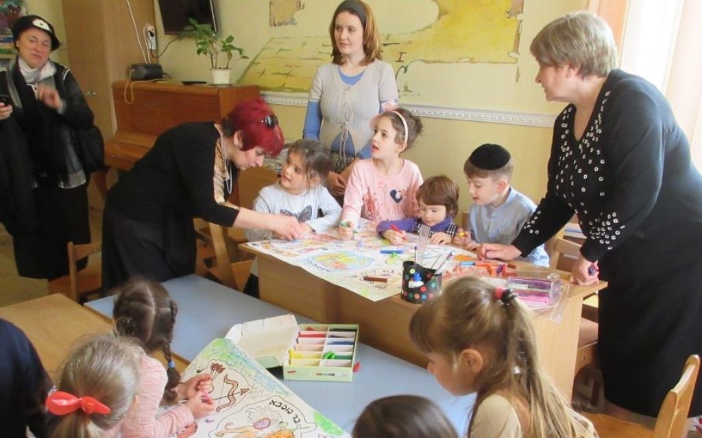 Children at Tikva’s kindergarten preparing materials for the Jewish festival of Lag B‘Omer, Odessa, Ukraine, May 12, 2017 (photo: Sue Surkes)