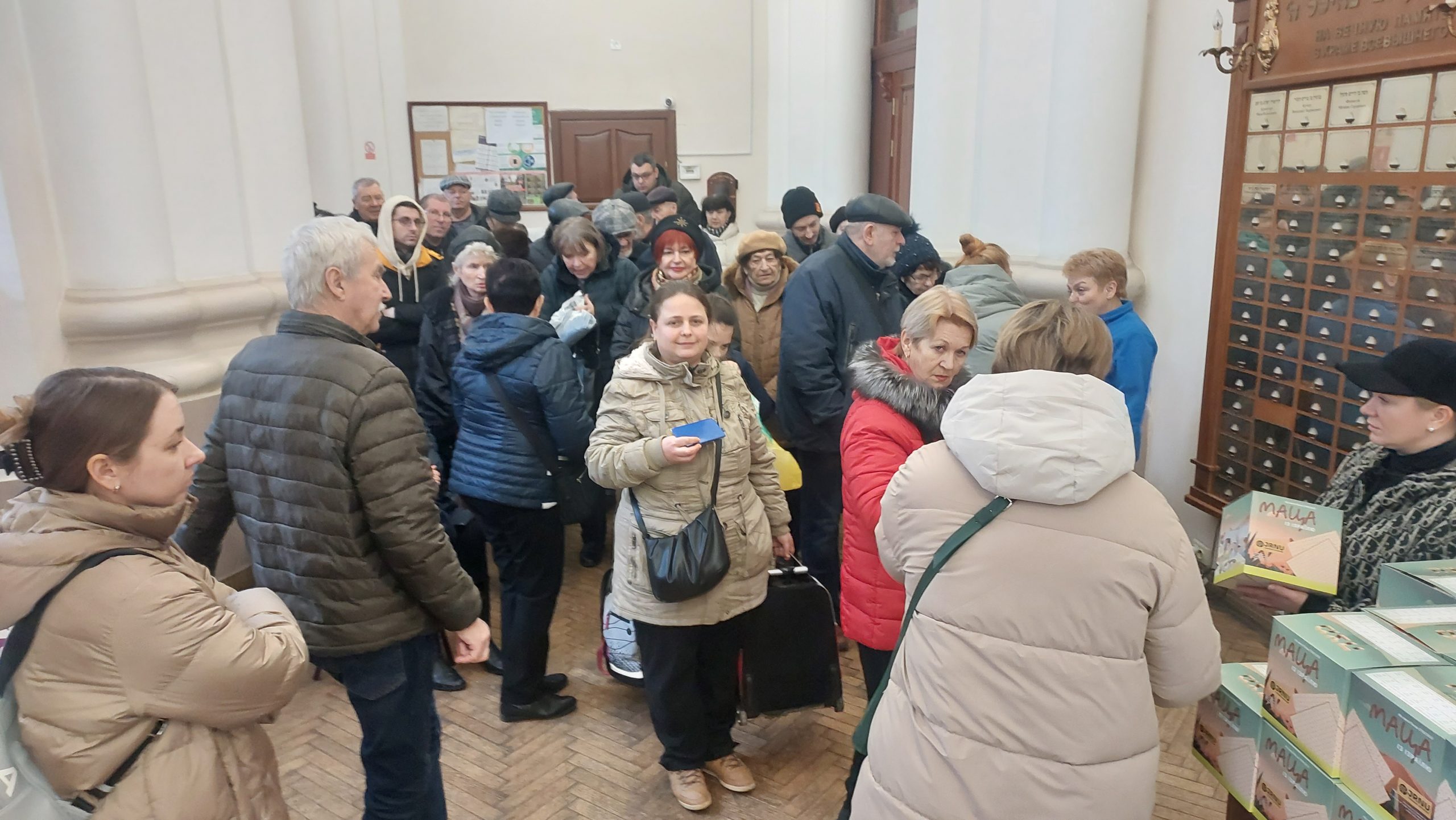 • A queue during the distribution of food parcels in Bela Cherkov. | Photo: Christians for Israel