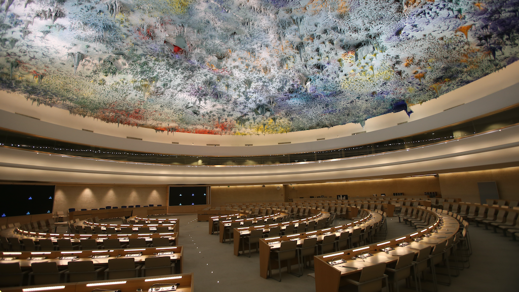 Meeting room of the United Nations Human Rights Council (Geneva, Switzerland). | Photo: Ludovic Courtès, Wikimedia Commons