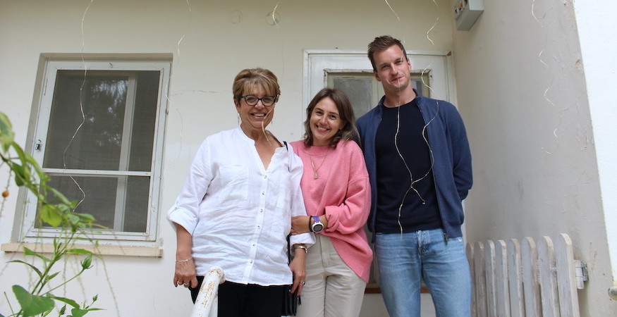 Elena Kovarsky with Darina and Andrey Balabanov in kibbutz Mashsabei Sadeh. They made aliyah from Belarus in September 2021 | Photo: JAFI