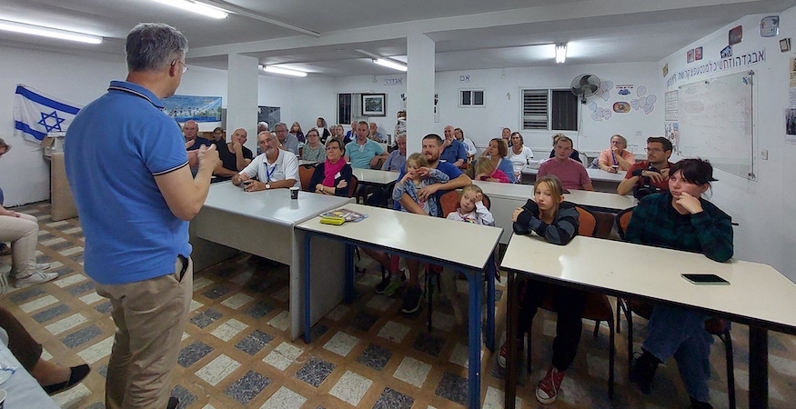 Tulip tour team with a big group from the Netherlands and participants of the “First Home in the Homeland” program, Yagur, 2022 | Photo: JAFI