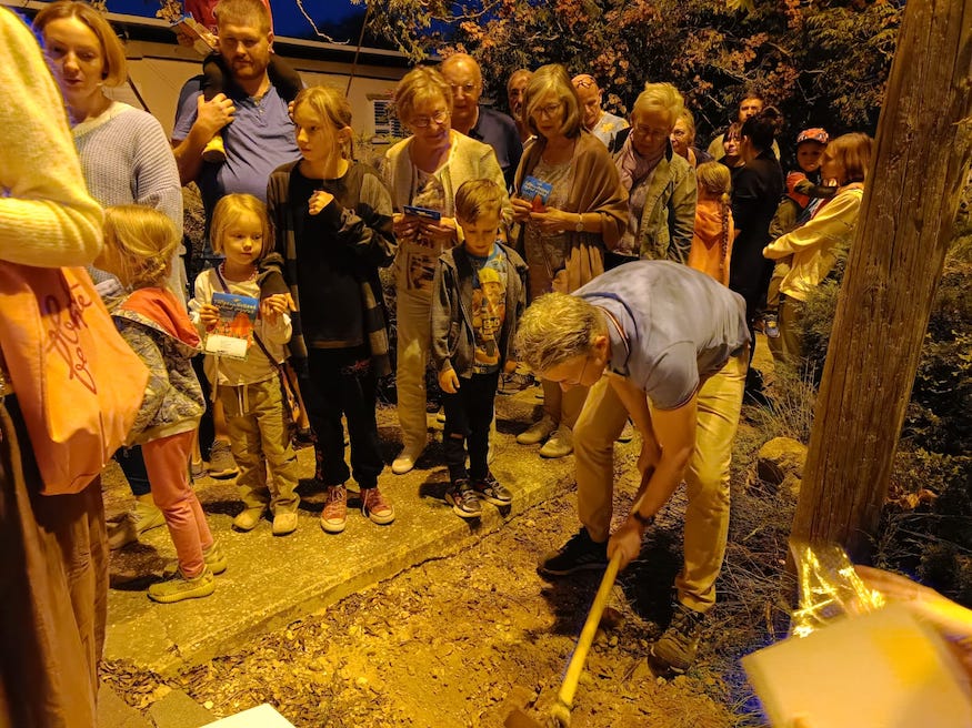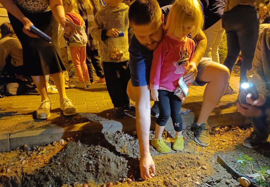 After sunset we went further and finally reached our last stop in Samaria. Because of the darkness we were planting tulips using our mobile torches. Children took an active part in the process and were helping the adults with great enthusiasm. When the job was done, we attended the Ulpan class to hear some aliyah stories.