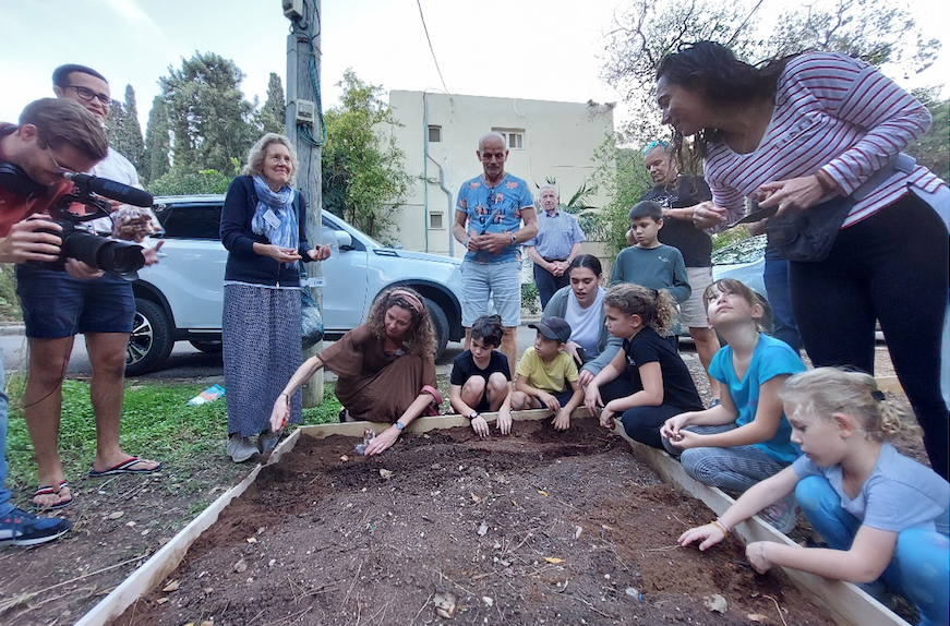 Yagur met us in the sunshine and the amazing view of a huge green mountain on the background, but also with smiles of our participants and laughing children who were helping us to plant the flowers.
