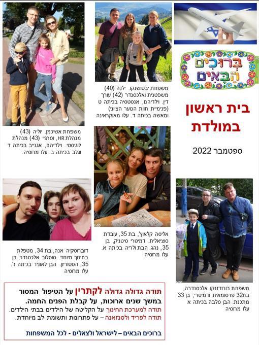We recently received a lovely picture from our coordinator Snezhana, who welcomed eight families in Eshkol Regional Council in October. This photo with a short description on it was published in the local newspaper of kibbutz Zeelim under the title “Welcome – First Home in the Homeland!”