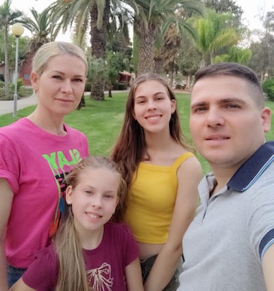 Oleksandr (42 y.o.), Olena (40 y.o.), Anastasia (15 y.o.), Mariia (9 y.o.) from Ukraine.