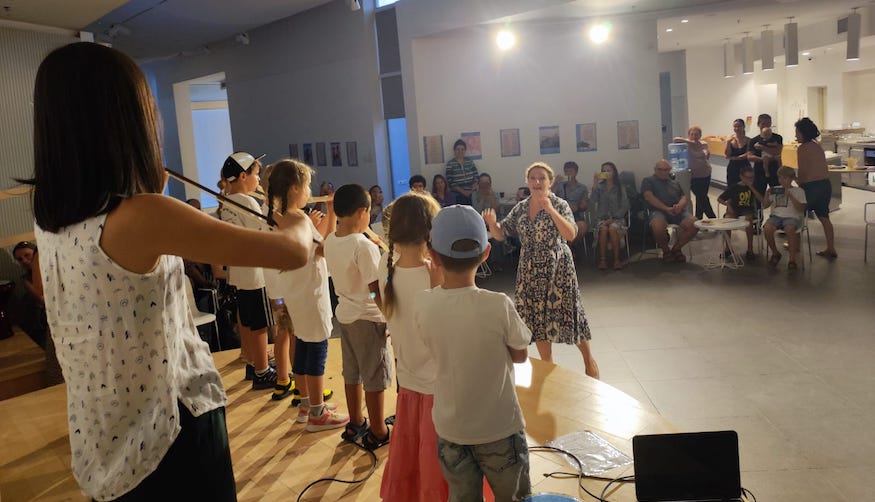 People are applauding. All of them share their emotions because they have also made aliyah via “First Home in the Homeland” at different times and stayed in the South of Israel. The program has been bringing new olim to Hevel Eilot already for over 30 years. Children are playing “Mary had a little lamb” song on the flutes and then their parents are singing together “Peace be upon us” (Od Yavo Shalom Aleinu) and “A very narrow bridge” (Gesher tsar meod).