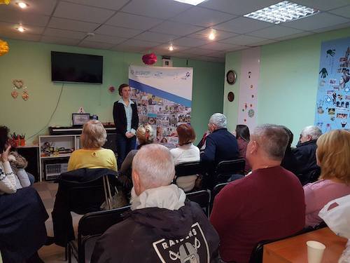 Orly Wohlstein explaining about the “Bridges of Israel” in the Jewish communities of Severodonetsk, Kremenchug and Mirgorod.