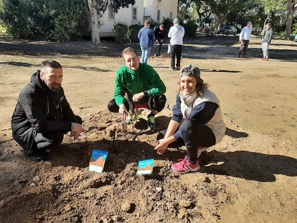 Tu-BiShvat is not only about planting but also about raising ecological awareness in people. Kibbutzim dwellers know quite a lot about the environmental issues to share their experience and knowledge with olim. We are happy that our families are fully involved in this process and help their new neighbors to enhance their home place and make it greener.
