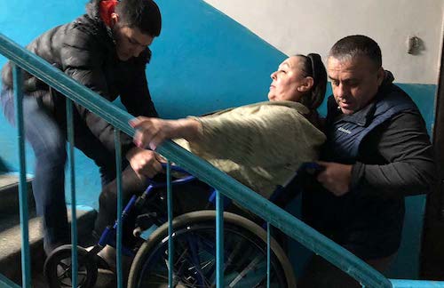 Unfortunately, in our country nothing is suitable for the disabled. Disabled people can only manage with other people’s help. For example, there is no elevator in the dilapidated apartment building where Elena was living on the fourth floor.