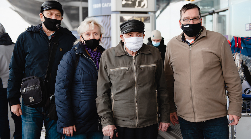 His daughters do not want to go with him, afraid of the unknown, and try to stop Anatoly as well. “If none of you want to accompany me to Israel, fine then, I will go alone and if I must, on foot.” That wins his youngest daughter Svetlana over and together they prepare to leave. When the time comes, they are collected by Koen and his team. A long drive of more than fourteen hours in dense fog, passing road blocks and over bad roads. When Koen asks how Anatoly is doing during the drive he invariably replies: “It is a fairy tale. Why don’t you drive us all the way to Israel? It is so comfortable here in this minibus.” Once in the airport lounge in Kiev all fellow passengers look on edge, except Anatoly. Hand in hand with daughter Svetlana he confidently walks towards the aircraft, towards his new future.