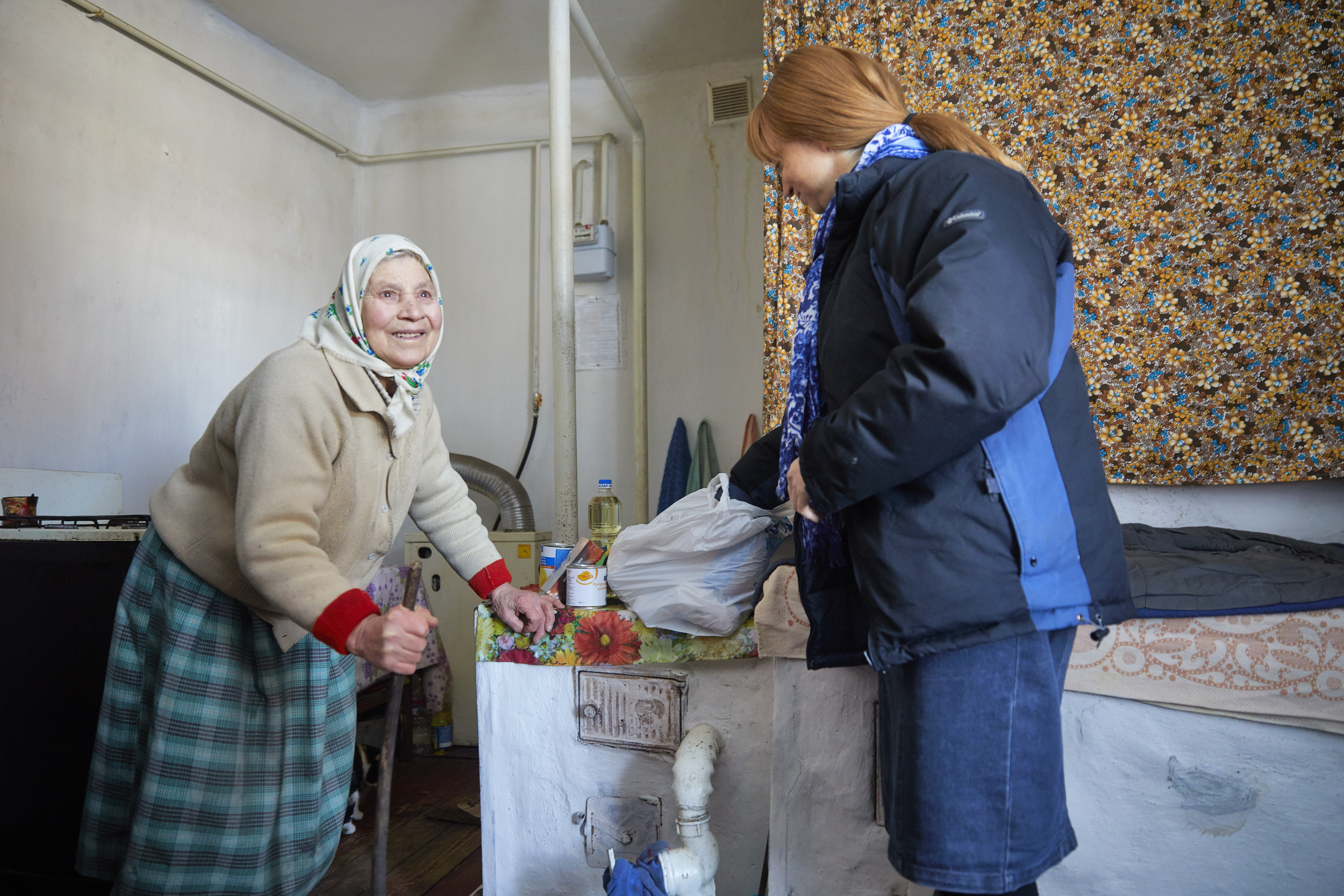 “Your visit gives me proof that there are still good people out there”, says 82-year-old Katia, when she opens the door of her creaky house. This Jewish lady lives a lonely life in the vast countryside of Ukraine. “I prayed for your coming. Thank you for looking after me. I can’t cook because I am half blind and can’t lift anything. Thank you from the bottom of my heart.”