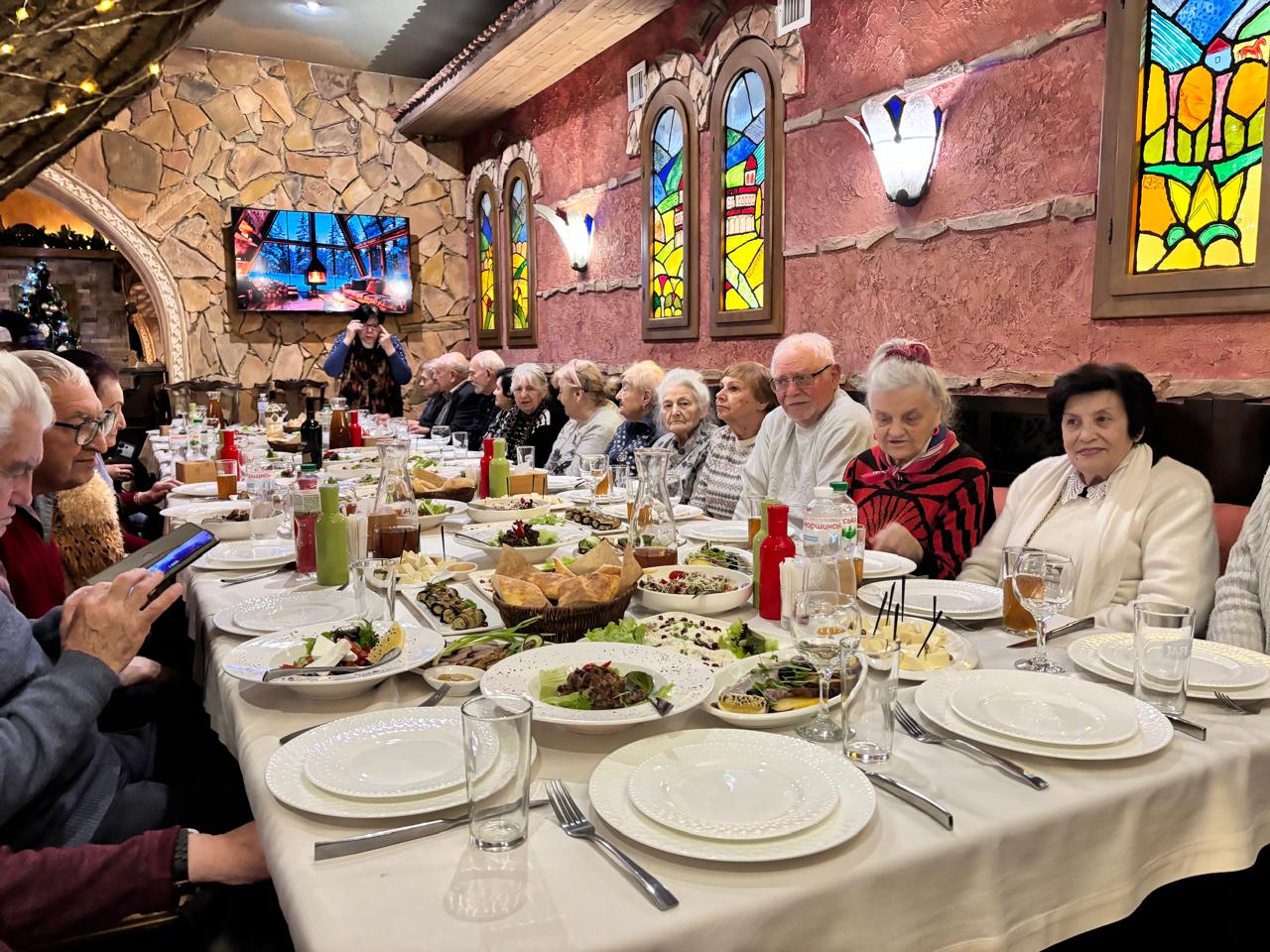 As we descend the steps to the Georgian restaurant Roman has chosen, everyone is already seated. Maxim, our violinist, has set the room vibrating with happy music, and in a moment, the drones and missiles are forgotten. One by one, they stand up to embrace us. Every single one of them is a Holocaust survivor in the stricter sense of the word. At some point, we sat with each of them in their tiny Soviet apartments to hear their tragic stories of how they were hidden in cellars and barns and cornfields or saw the slow death in ghettos. Sharing the most painful moments with each other has created such a deep heart connection that we now celebrate together in a whole different way. And what a celebration it is!