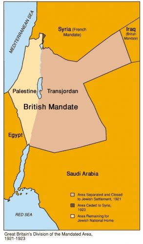 Just to be perfectly clear: that Jewish homeland extended itself on both sides of the Jordan River; this was laid down in multiple international agreements. In this manner the settling of the Jewish people in the entire Mandate area of Palestine was legitimized. The phrase “homeland” of course is not without meaning; it is about the Promised Land, the home of the Jewish people since the promise to Abraham, the domain of the Twelve Tribes of Israel where its entire history took place. The mere fact of the numerous archaeological findings confirm the ancient Israeli history in the area and even the Arabic names of so-called Palestinian villages betray their Hebrew background.
